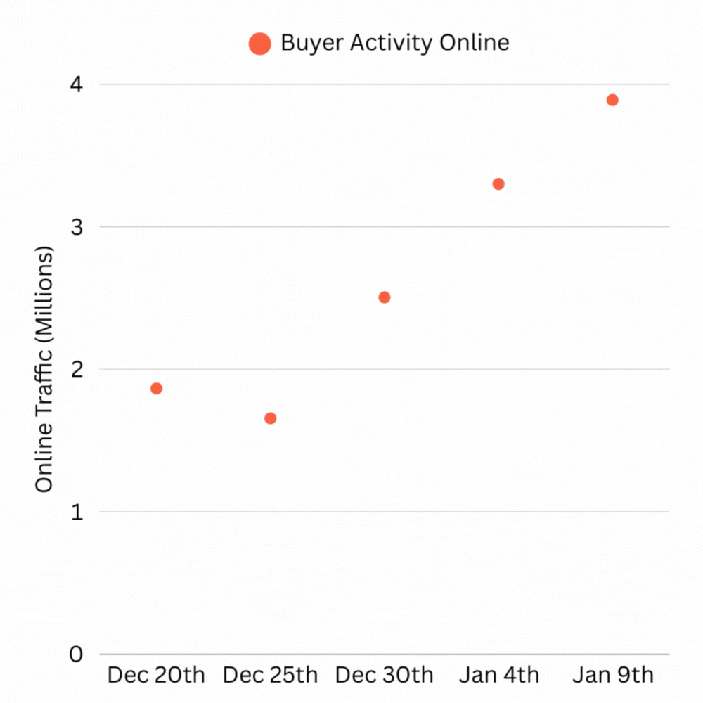 That’s why we see online enquiry skyrocket from Boxing Day all the way through the holidays. This is the best time to capture the attention of buyers. (Why do you think Boxing Day sales always go crazy?)